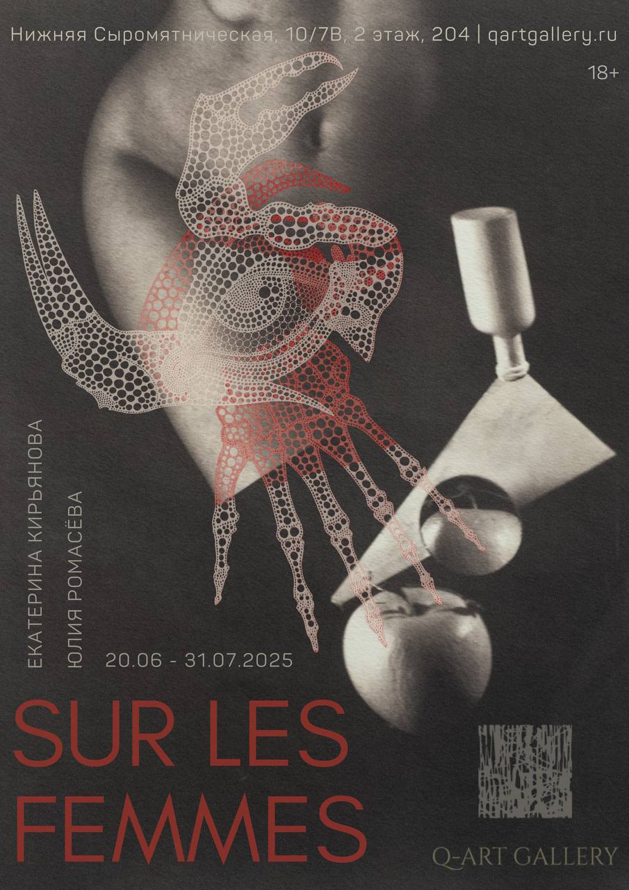 Новая выставка открыта в Q-ART Gallery. Героинями проекта Sur les femmes стали современные российские художницы – Юлия Ромасёва (графика) и Екатерина Кирьянова (фотография). Они ведут диалог в русле, пожалуй, самого загадочного течения в мировом искусстве – сюрреализма.