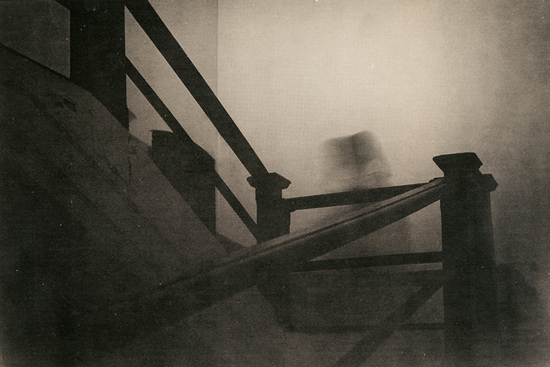 Работы серии «Палаша» напечатаны в лит-процессе. Через выбор подходящей бумаги и техники я хотела не только добиться эффекта «состаривания» (словно фотографии были сделаны в прошлом веке, когда образ девушки еще являлся посетителям замка, а после пролежали годы в сыром подвале), но и вернуть бесплотному образу видимую оболочку.