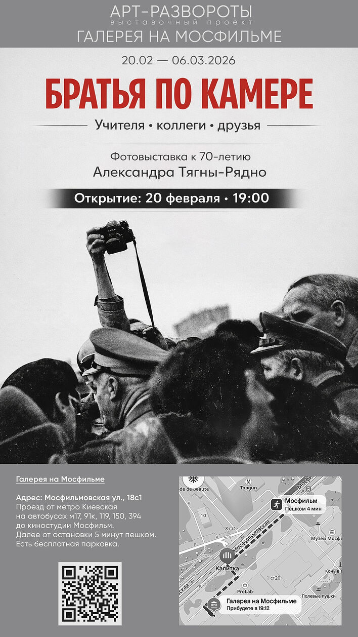Фотовыставка Александра Тягны-Рядно, посвященная 70-летию автора, показывается в «Галерее на Мосфильме». Открытие состоится традиционно в день рождения автора 20 февраля в 19.00.