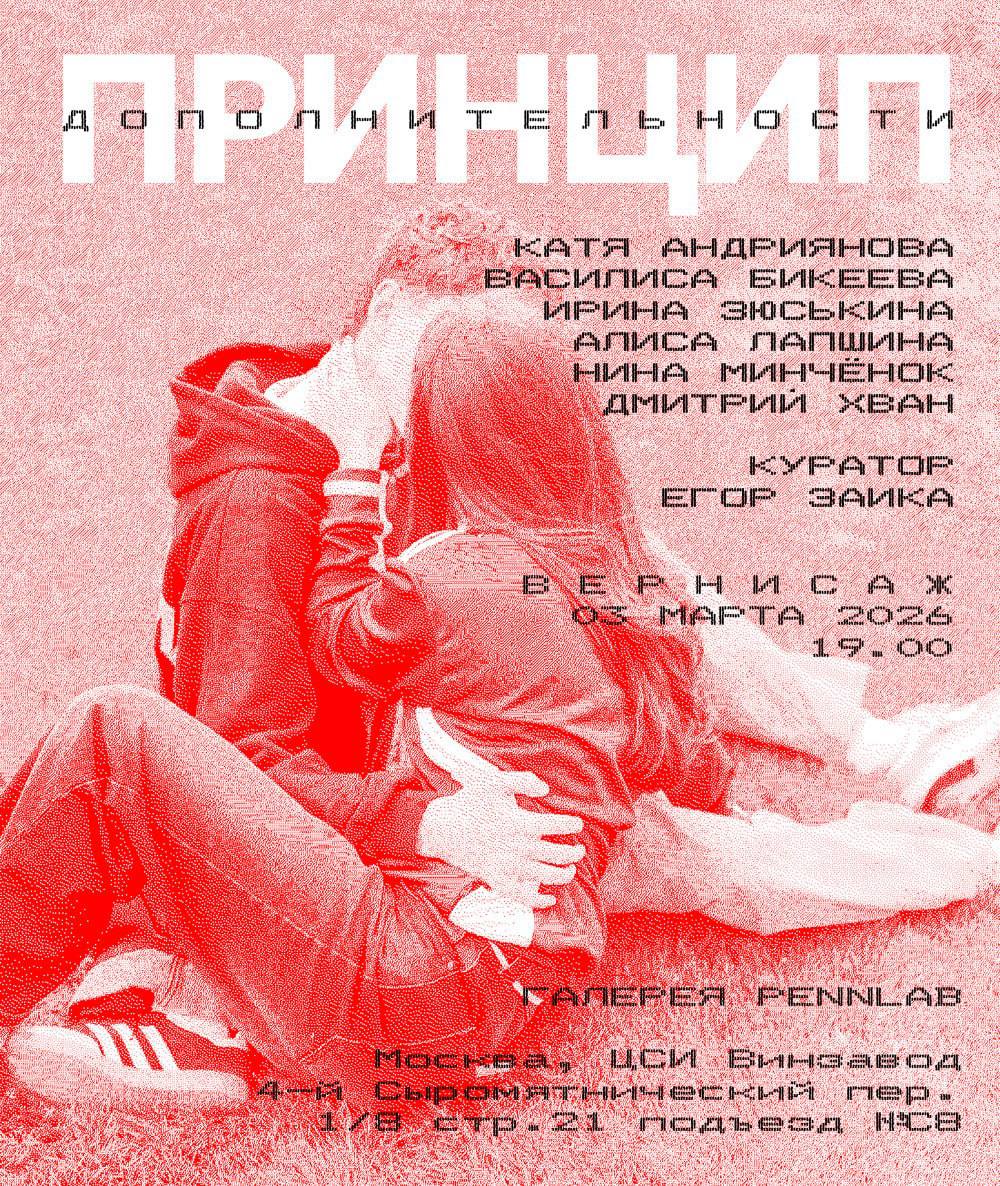 Галерея PENNLAB представляет выставку «Принцип дополнительности», объединяющую шесть художников лаборатории печатных практик «Фотооснова» Центра художественного производства «Своды» Дома культуры «ГЭС-2», которая пройдёт с 4 марта по 10 апреля 2026 года.