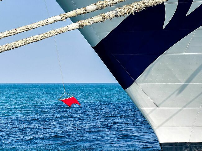 Круизный лайнер с красным сигнальным флагом