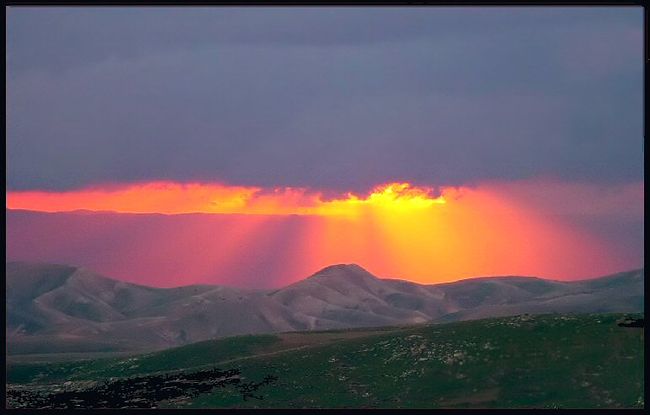 Иудейская пустыня и Заиорданье. Горы Моавитские в лучах восходящего солнца.