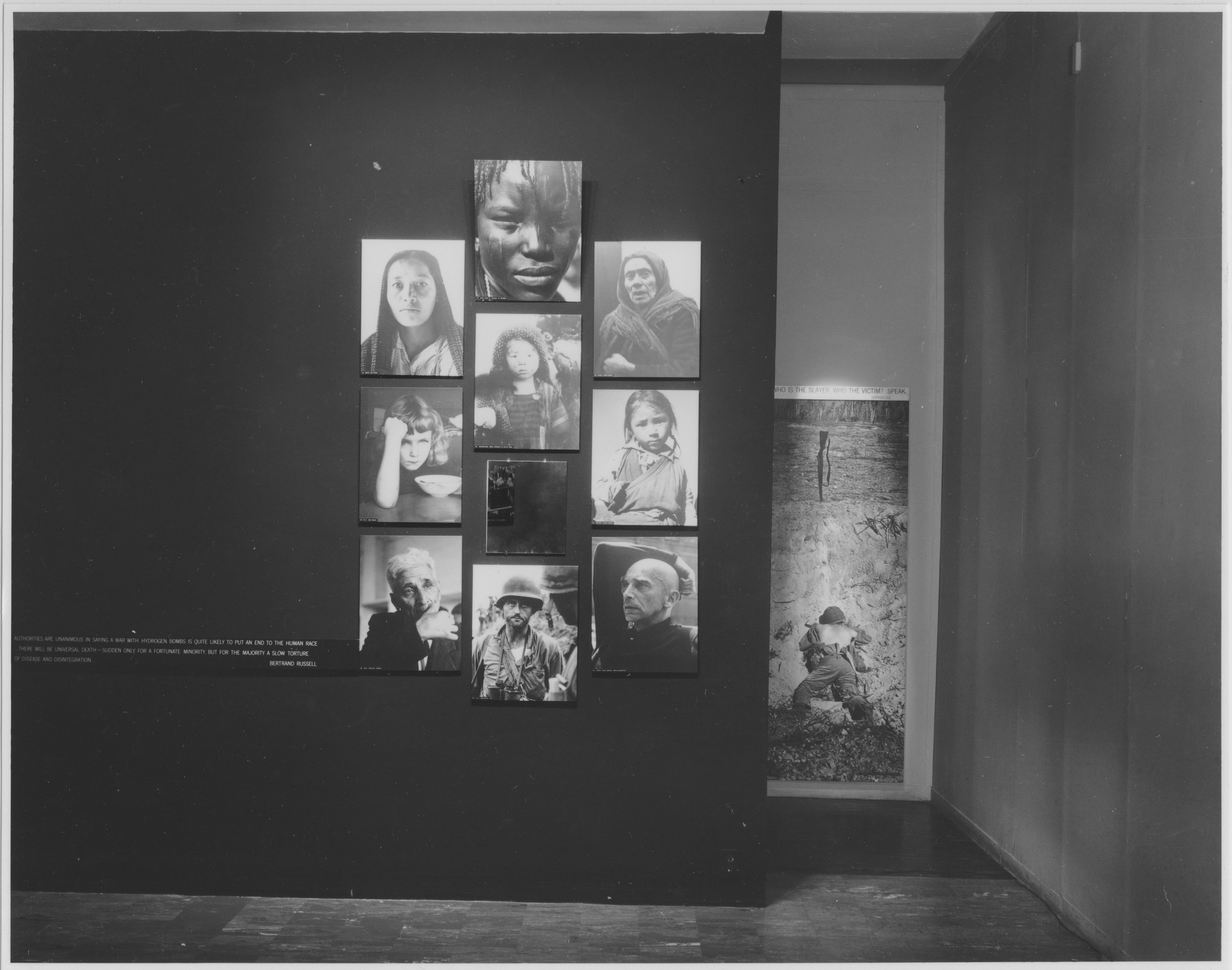 P. S. По воспоминаниям Хелен Джи и по сохранившимся планам экспозиции в MoMA можно видеть, что финальным акцентом выставки является не ядерный взрыв. В последнем зале экспонировалась фотография заседания Ассамблеи ООН и подборка фотографий детей, завершающаяся снимком Юджина Смита "Прогулка в райский сад".